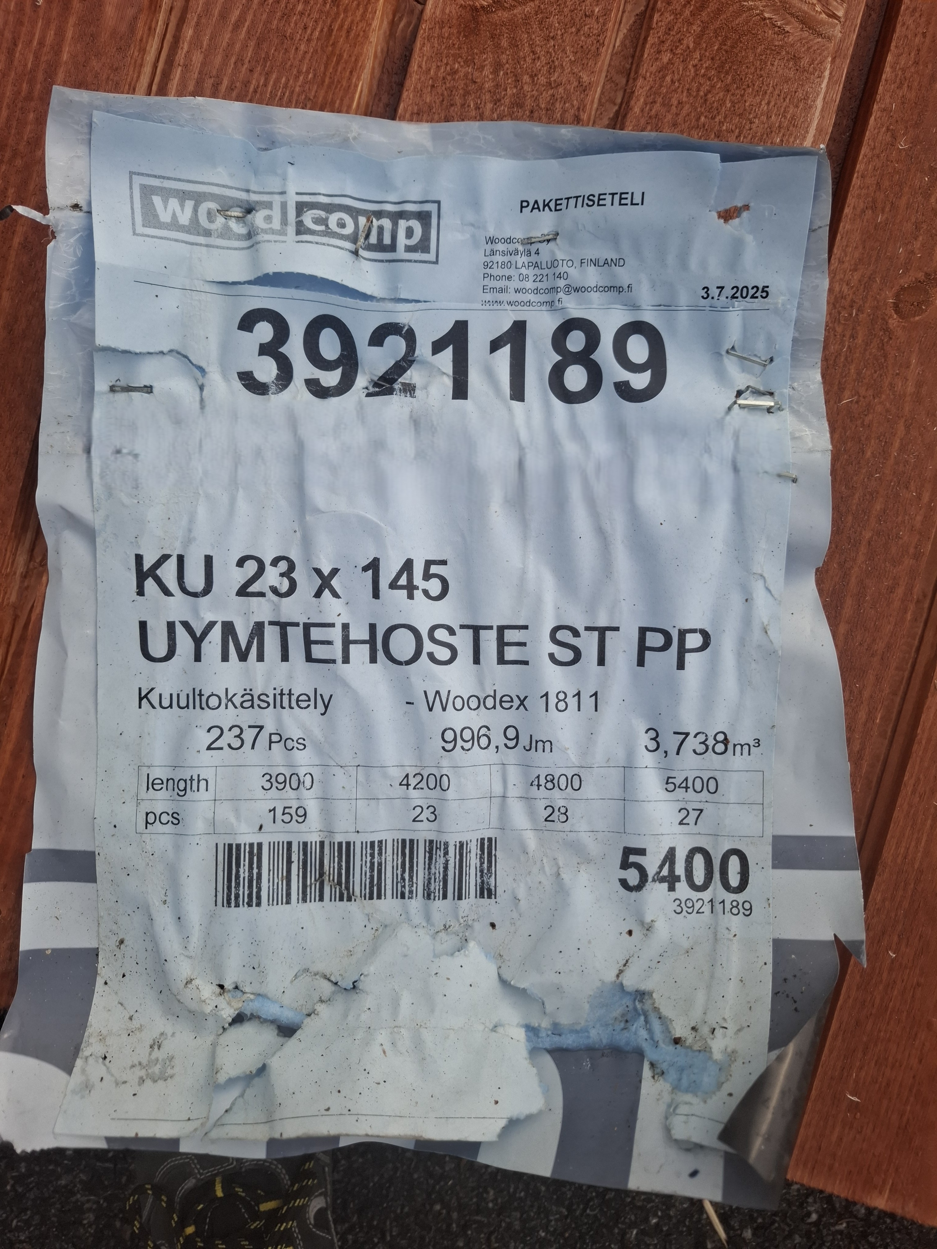 Erä ulkoverhouspaneeli valeura 23 x 145 UYM. Noin 350m