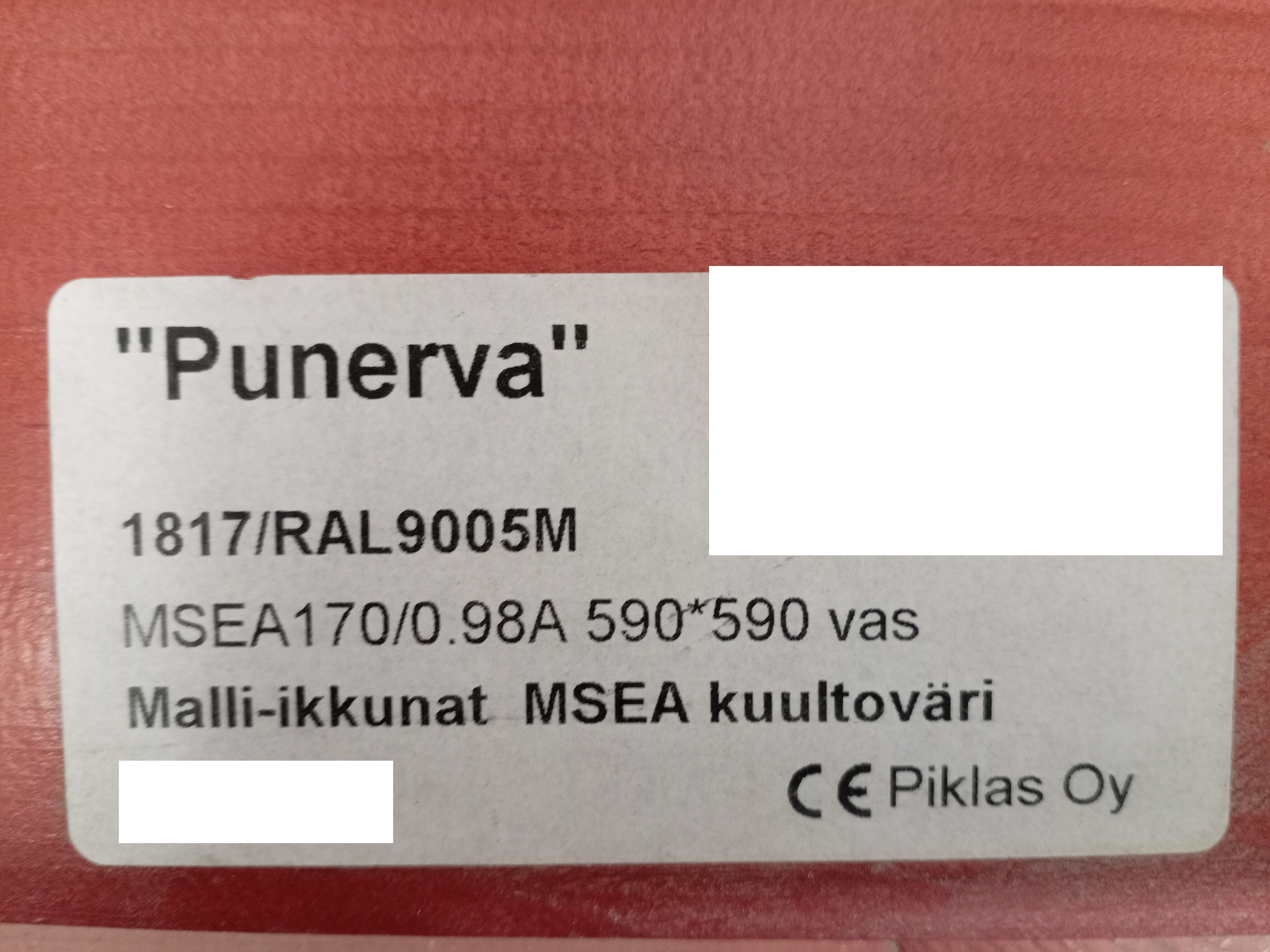 *Puu (Kuultopunainen 1817 Punerva) sisäpuoli / Musta matta (RAL9005) alu ulkopuoli