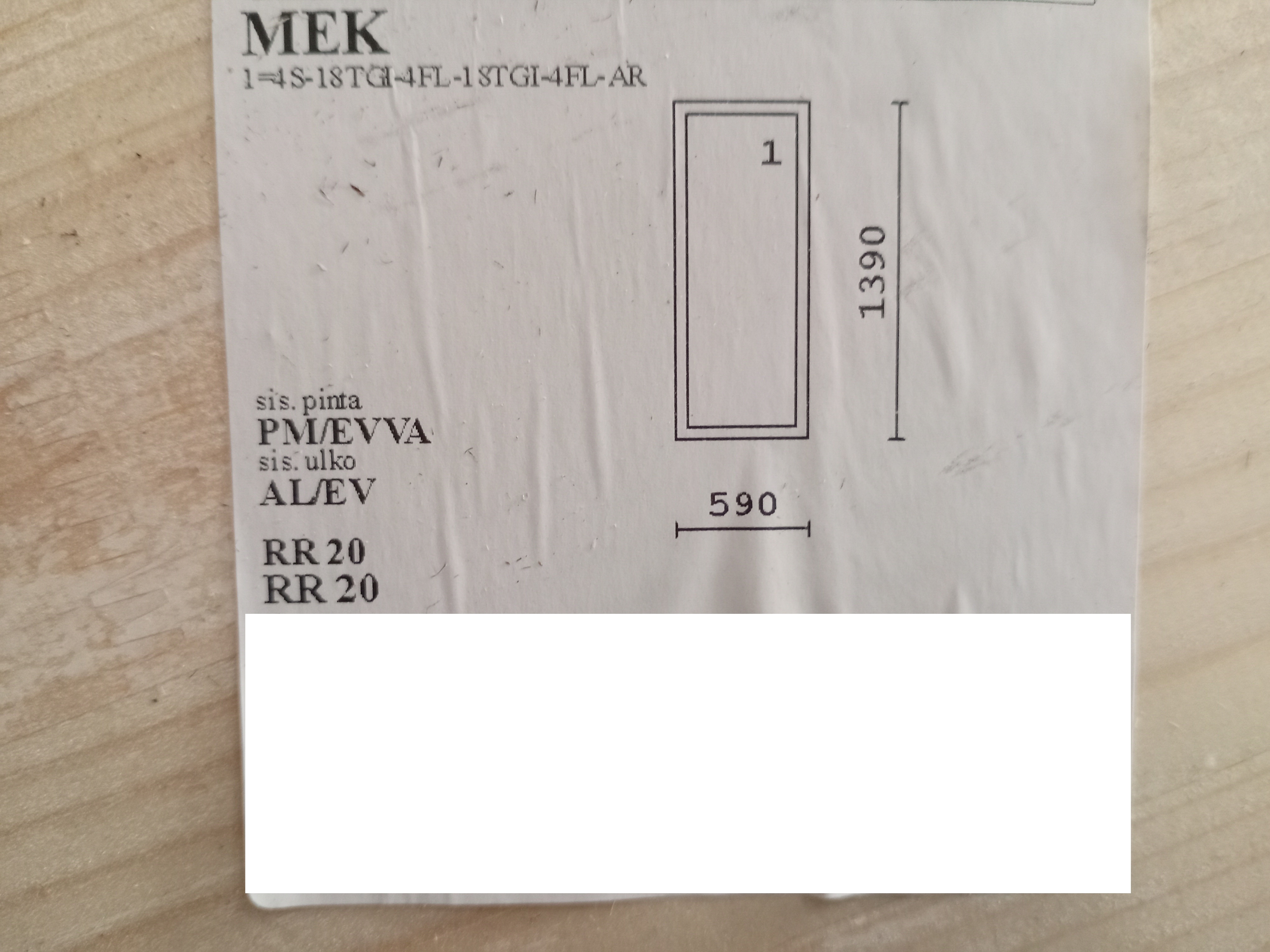 *Valkoinen (RR20) sisäpuoli / Valkoinen (RR20) alu ulkopuoli