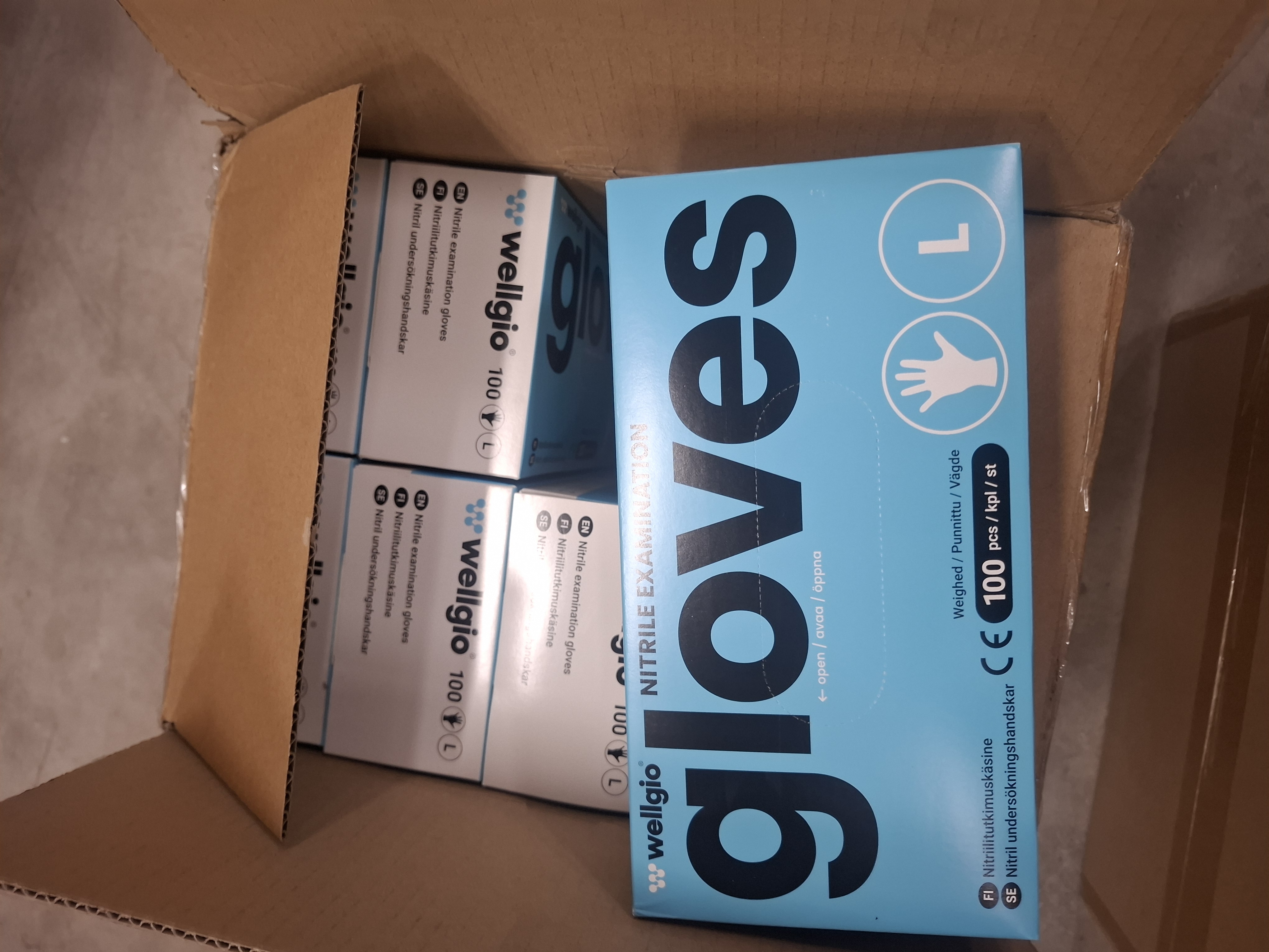 Wellgio nitriilikäsine puuteriton sininen, Koko L, 100kpl