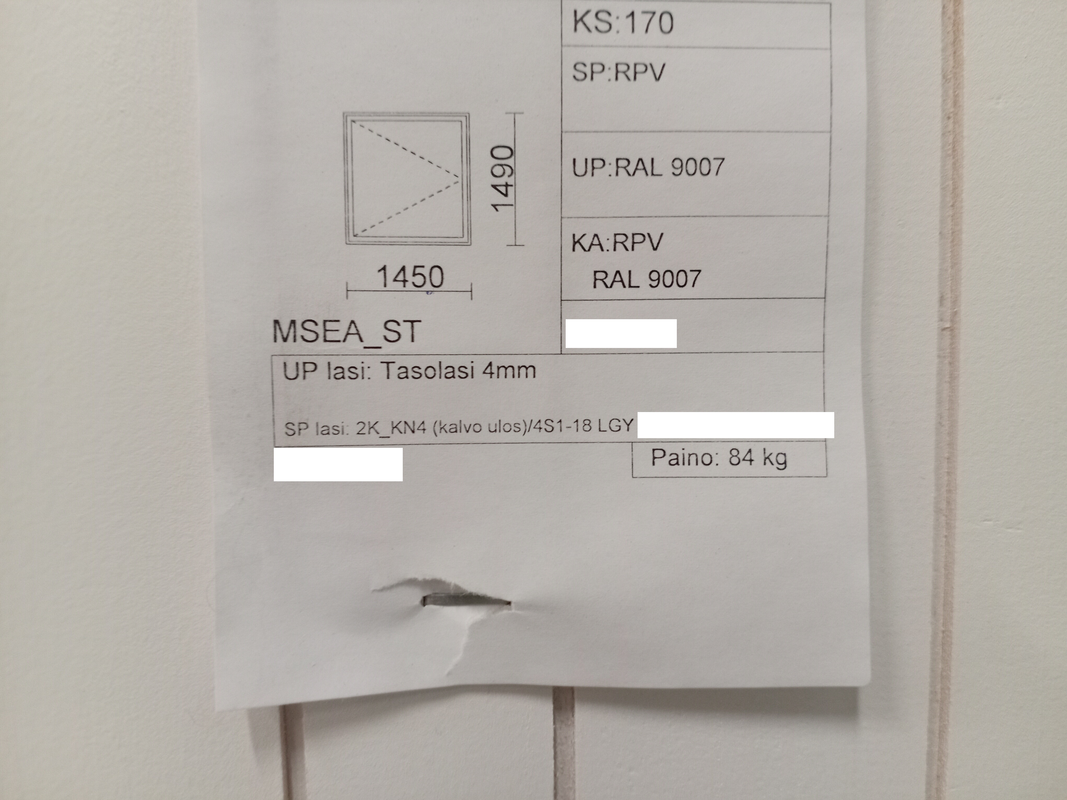 Alavus MSEA 170/1.0 fönster, Vänsterhands
