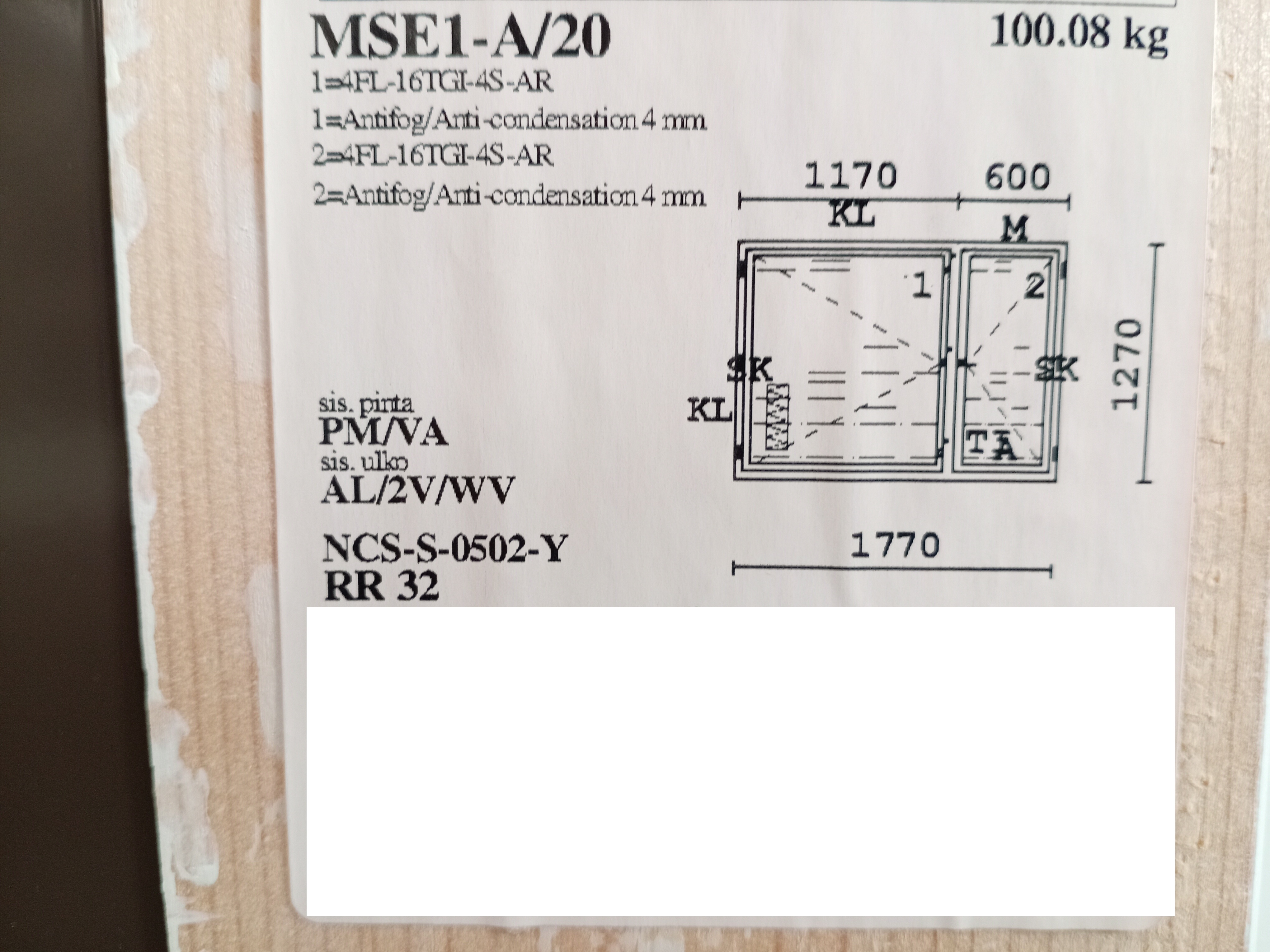*Vädringsfönster till höger, sedd från insidan